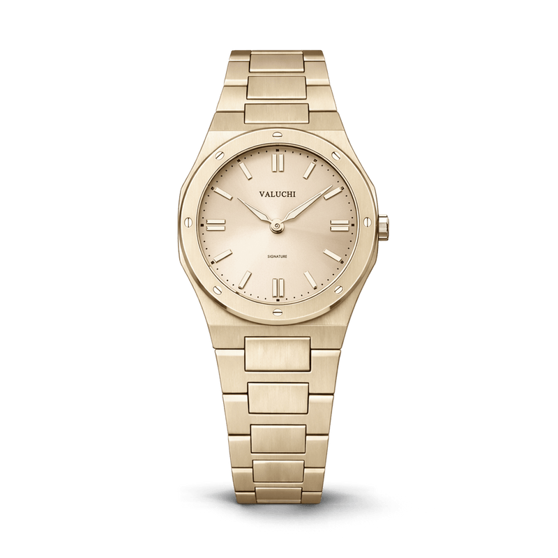 Die Signature - 31mm ist mit einem zuverlässigen Quarzwerk ausgestattet, das eine genaue Zeitmessung gewährleistet. Die klassische analoge Anzeige mit Stunden-, Minuten- und Sekundenzeiger erleichtert das Ablesen der Zeit auf einen Blick. Für zusätzlichen Komfort verfügt die Uhr über ein Datumsfenster. Egal, ob Sie bei der Arbeit oder mit Freunden unterwegs sind, diese Uhr hält Sie stilvoll auf dem Laufenden.